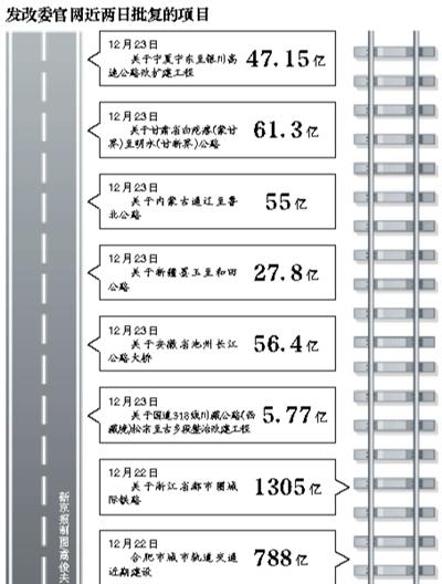 進入年底收官之時,國家發(fā)改委頻出大招,集中審批一批機場、鐵路、公路項目。12月23日,國家發(fā)改委官網(wǎng)顯示,審批通過六個基礎設施項目,投資總額為人民幣253億元。此前一天,發(fā)改委剛批復近2100億的地鐵建設項目。