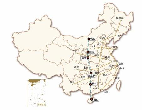 國家發(fā)改委出臺的《中長期鐵路網(wǎng)規(guī)劃(2008年調(diào)整)》中,西安-安康-恩施-張家界已經(jīng)列入研究項目,接下來只需向張家界往南延伸。廣西2014年出臺的《全面深化改革推動廣西鐵路大發(fā)展實現(xiàn)市市通高鐵工作方案》,則將張家界-桂林-玉林-?谝痪高鐵列入規(guī)劃。